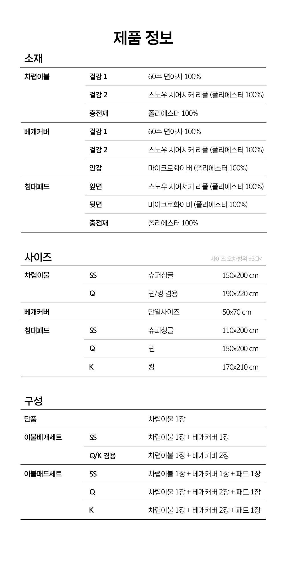베케이션 면아사 스노우 시어서커 리플 여름 차렵이불 SSQ 5color