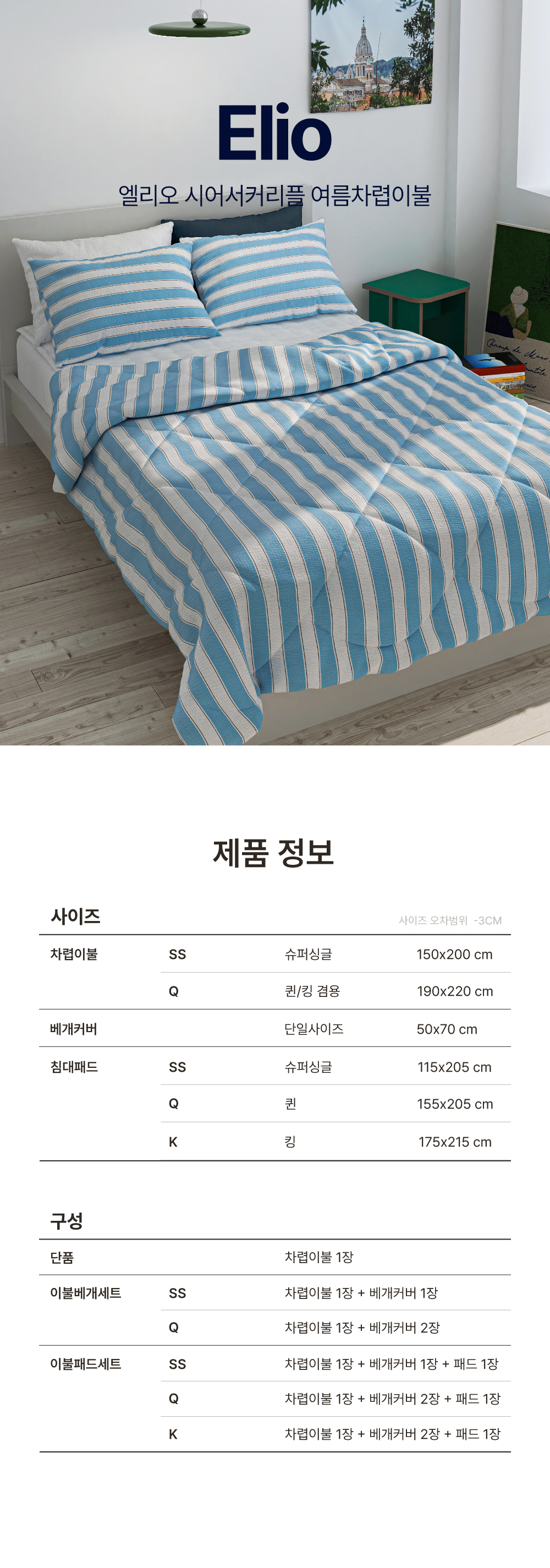 엘리오 시어서커 리플 여름 차렵이불 단품 세트 SSQK