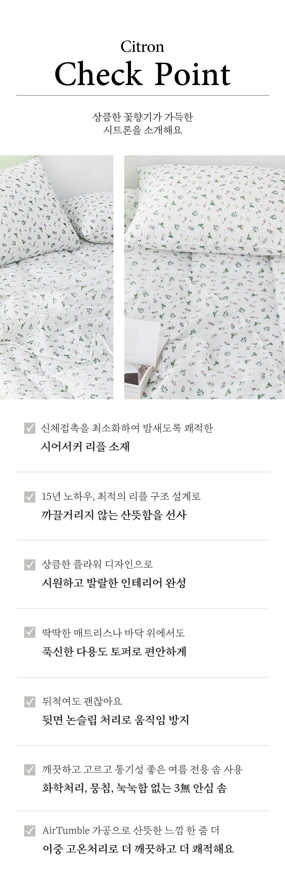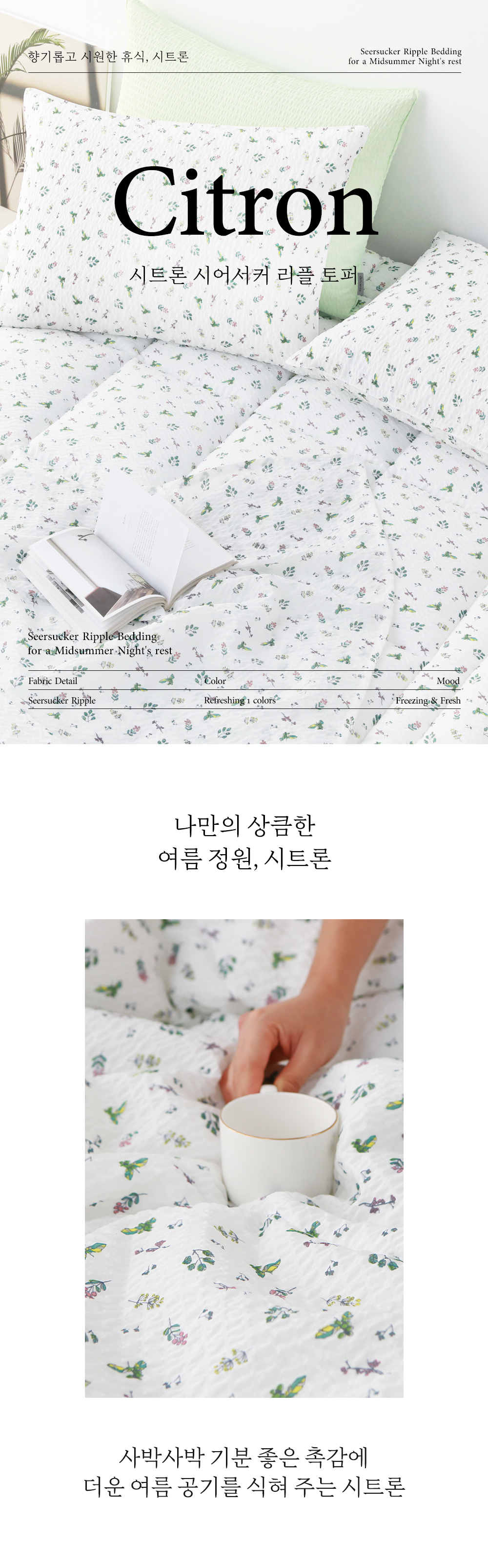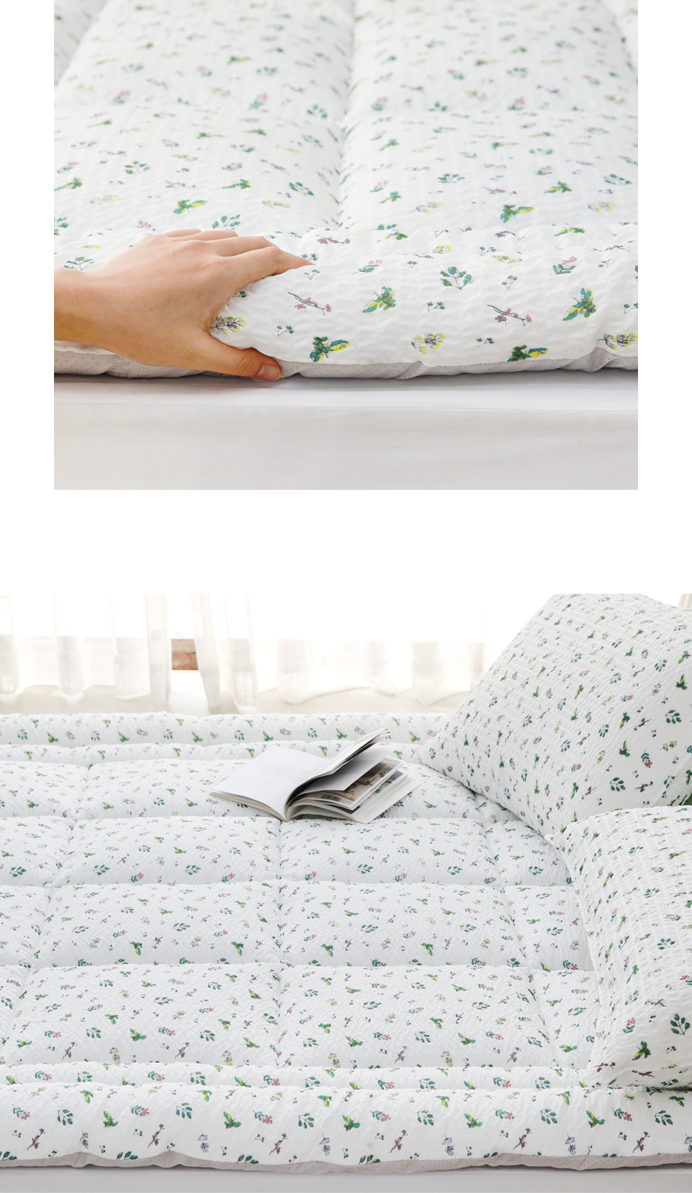 앞면 : 시어서커리플 (폴리에스터 100%)뒷면 : 미끄럼방지 원단 (폴리에스터 100%)충전재 : 폴리에스터 100% |