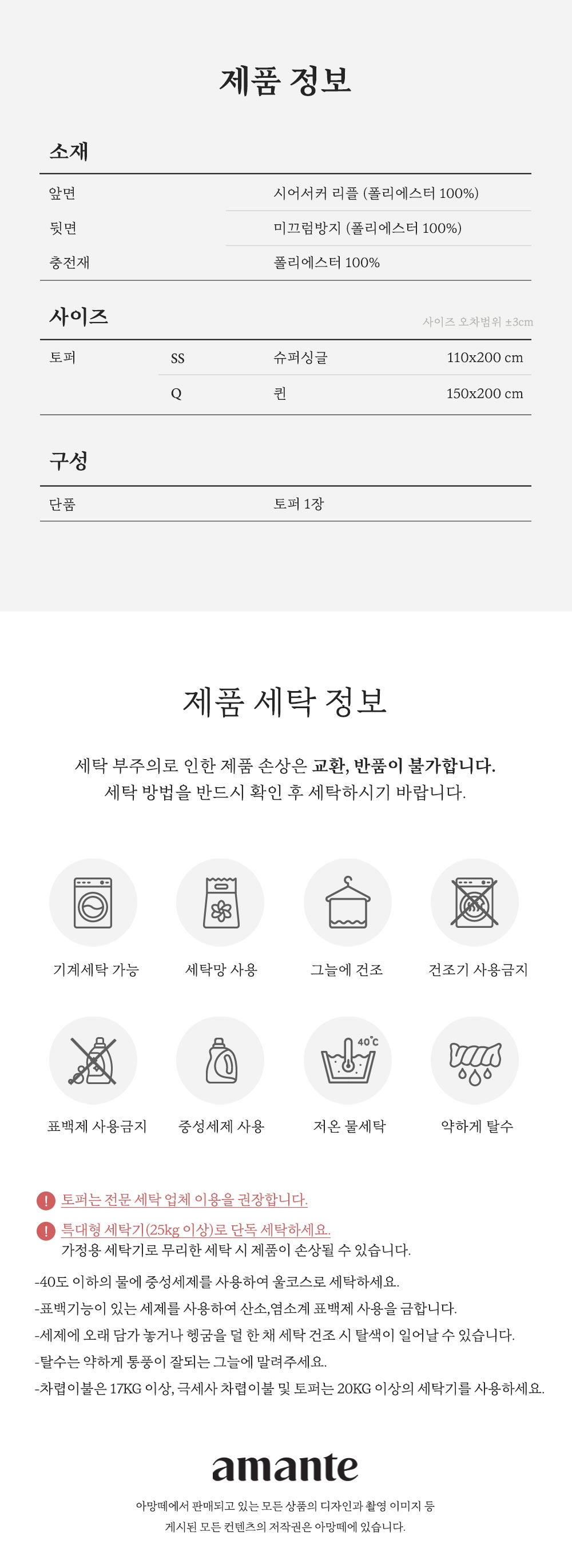 택1 : (SS)110cmX200cm / (Q)150cmX200cm |