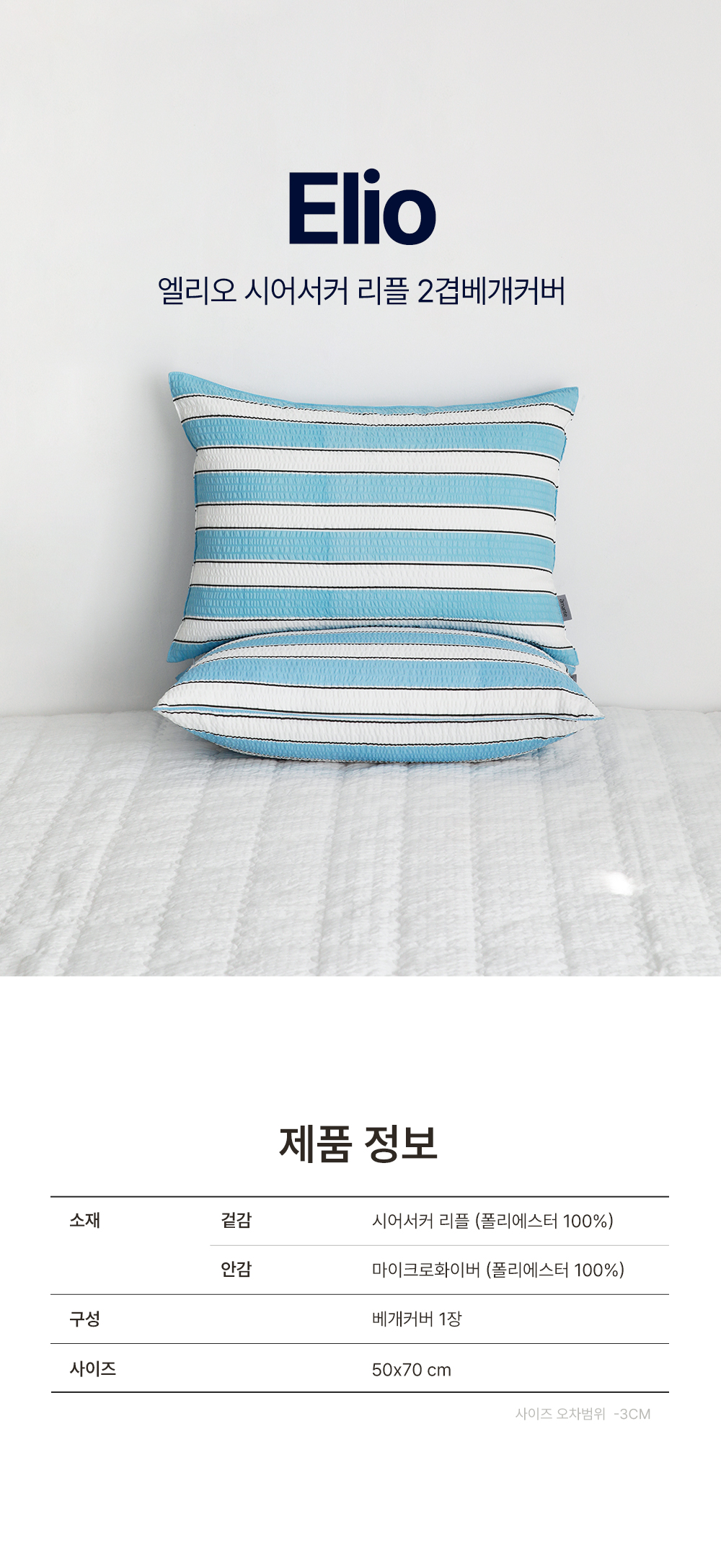 엘리오 시어서커 리플 2겹 베개커버 50x70