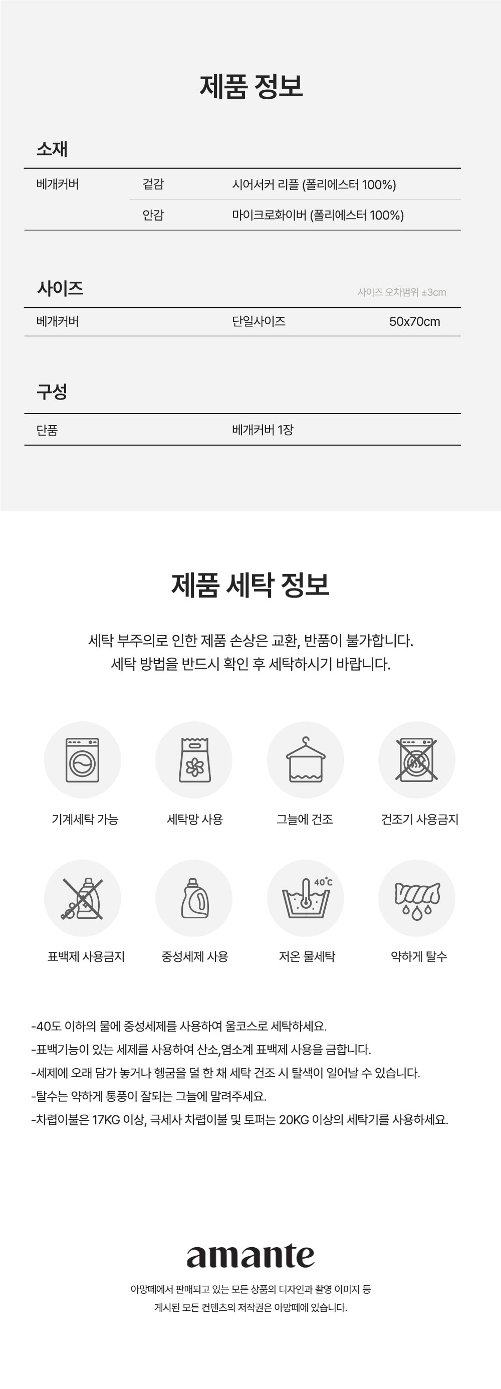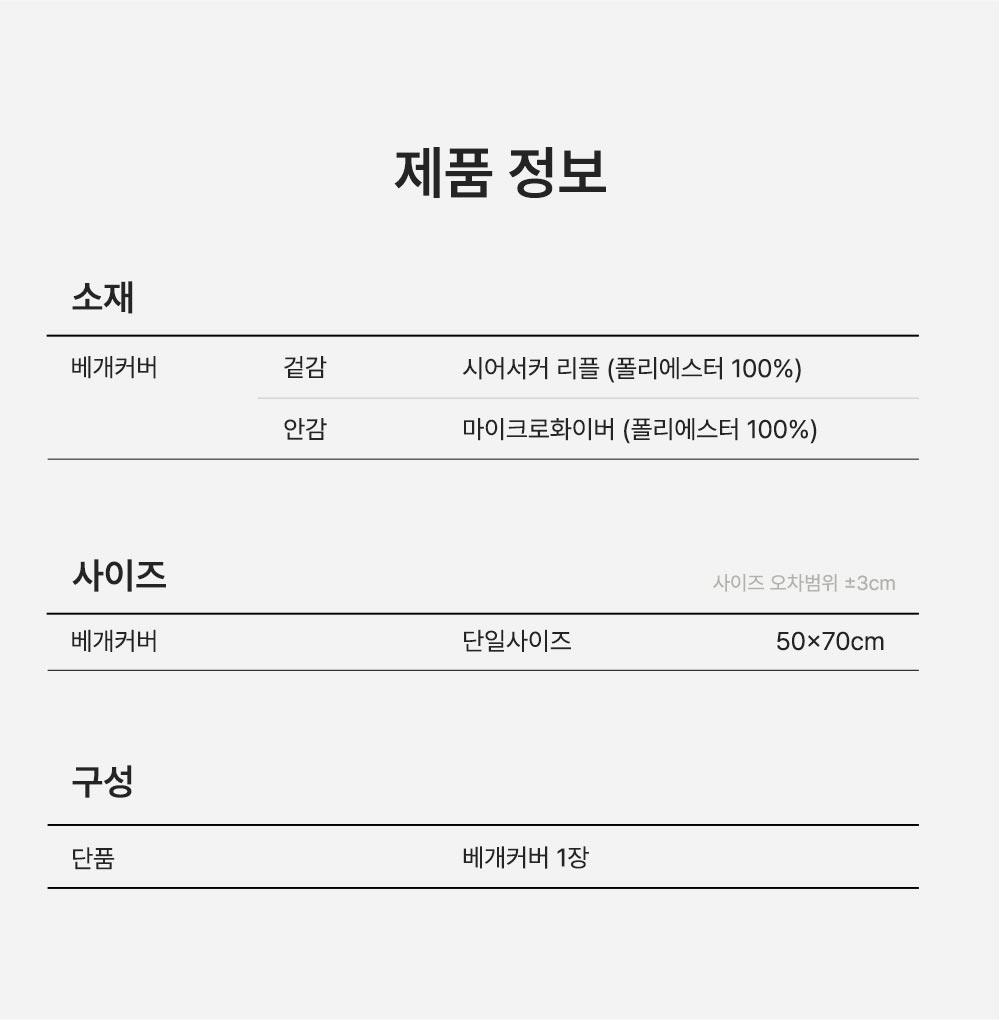 ![]() | 겉감 : 시어서커 리플 (폴리에스터 100%) |