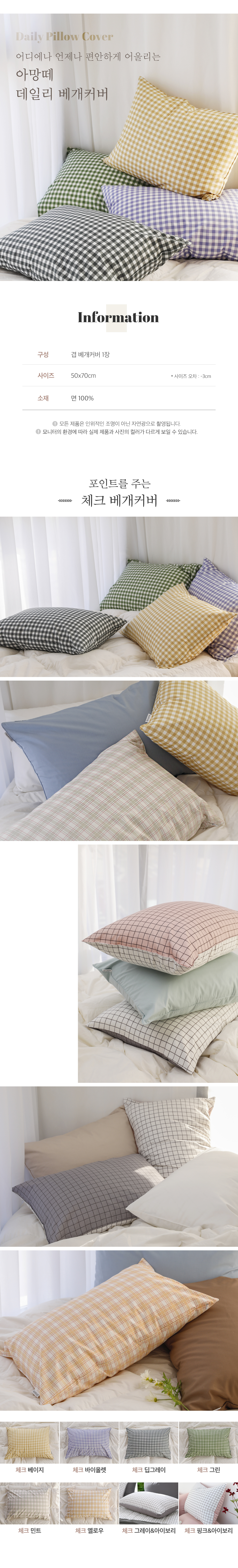 아망떼 데일리 순면 무지체크 베개커버50x70
