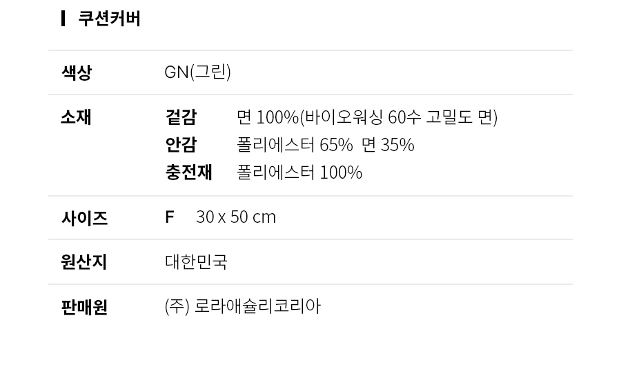 플레르 바이오워싱 60수 고밀도 면 쿠션커버 30X5035102554