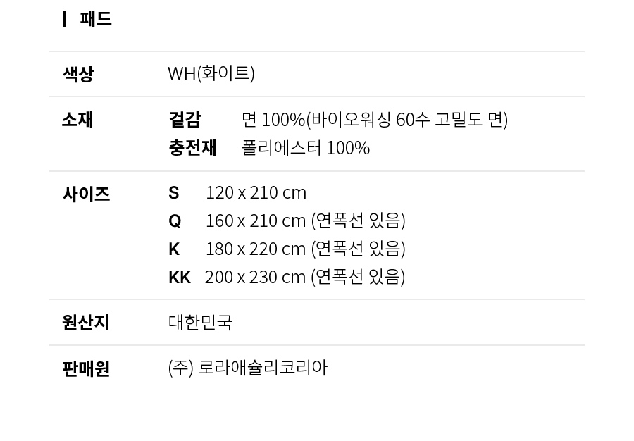 뉴스틸 바이오워싱 60수 고밀도면 이불 패드 S35102544