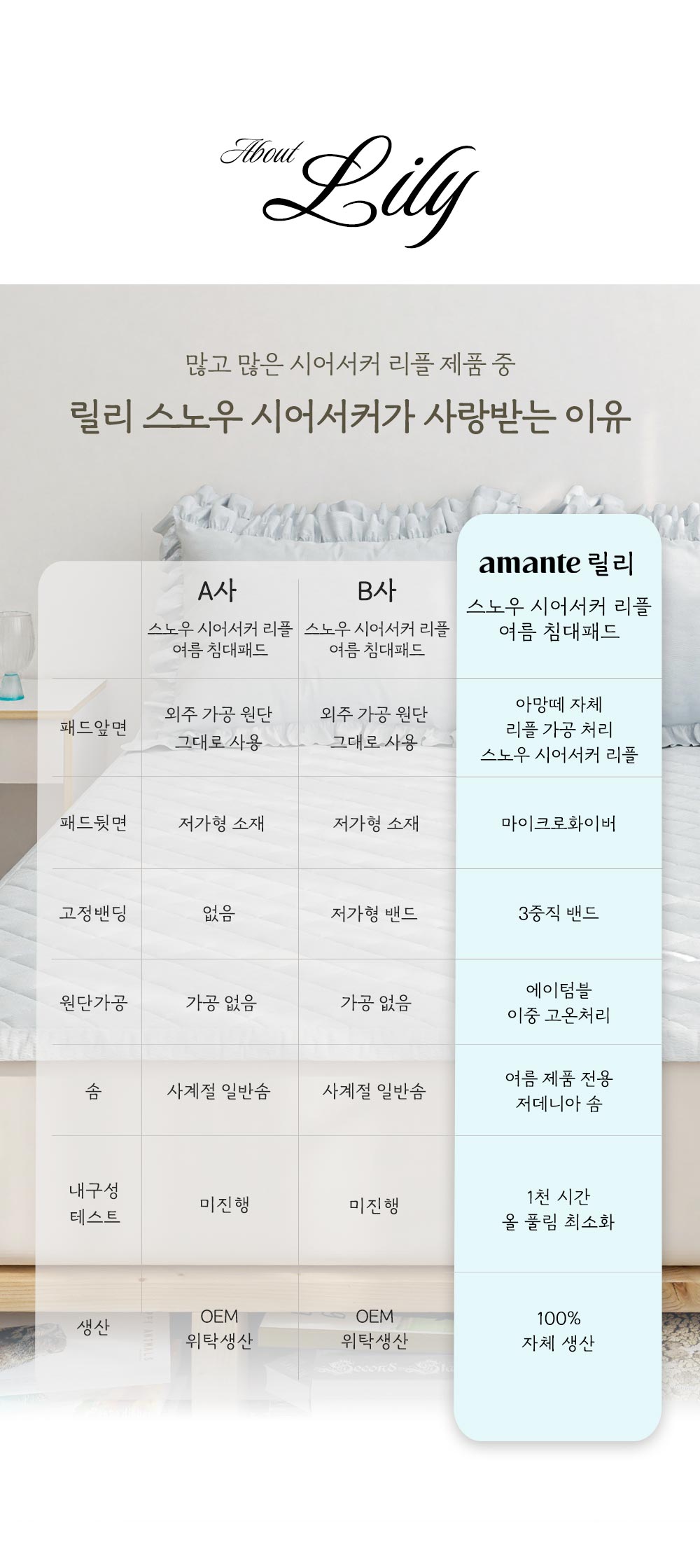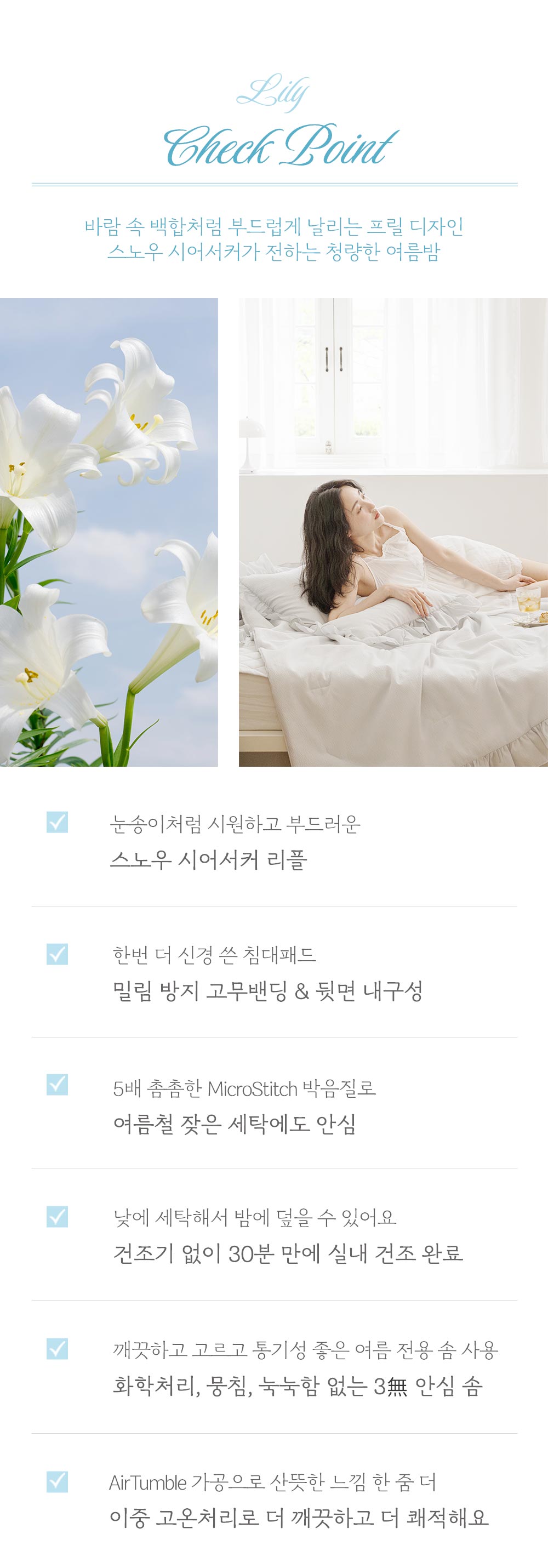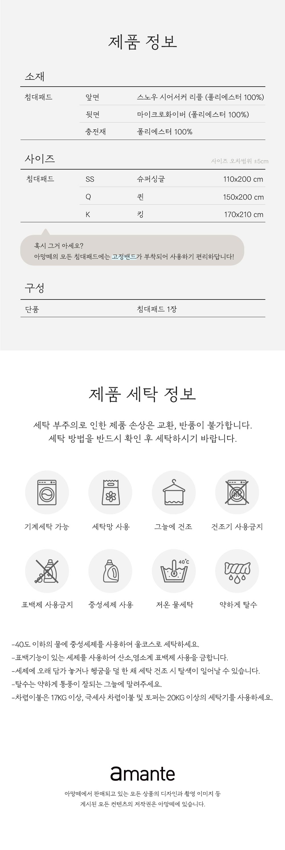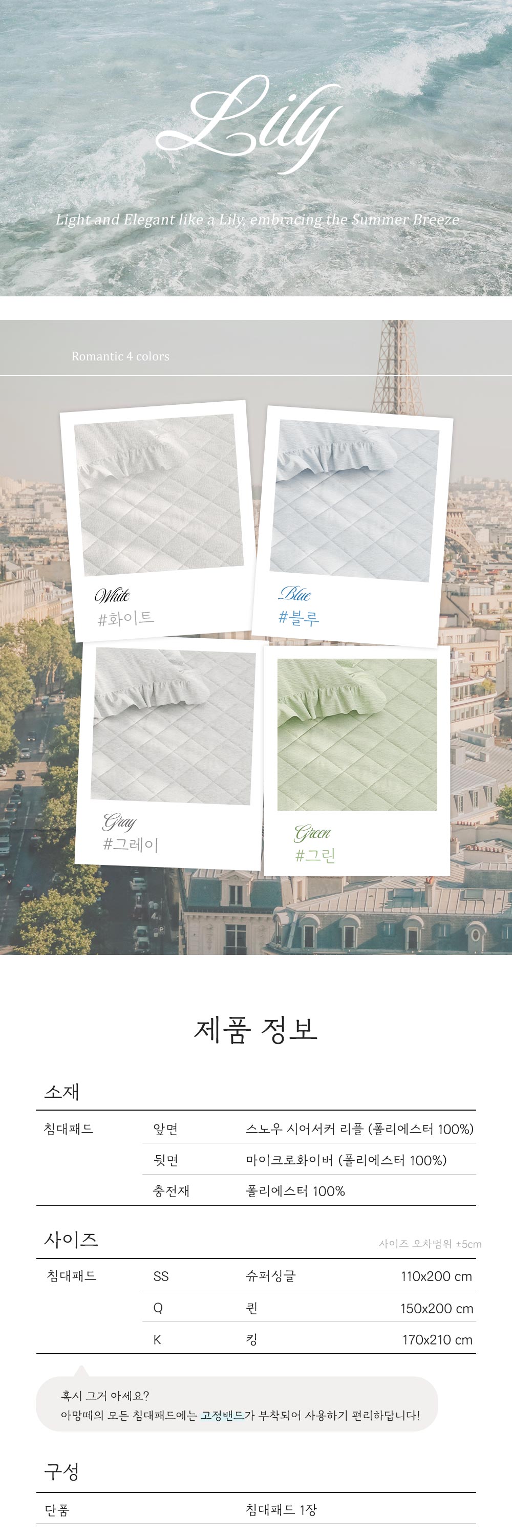 릴리 스노우 시어서커 리플 침대패드 SSQK 4color