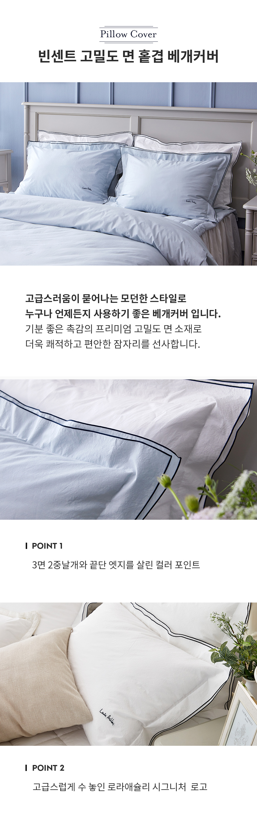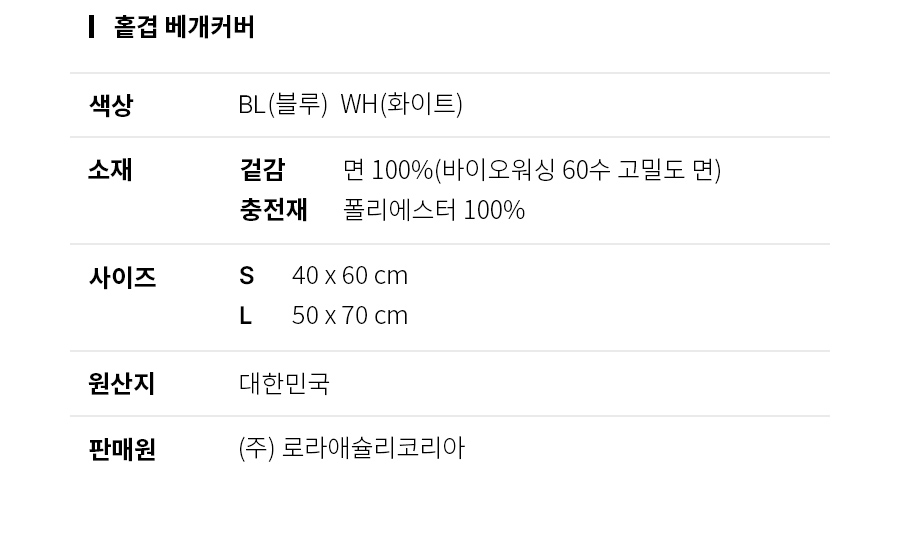 빈센트 바이오워싱 60수 고밀도 면 홑겹 베개커버 50X7035177164