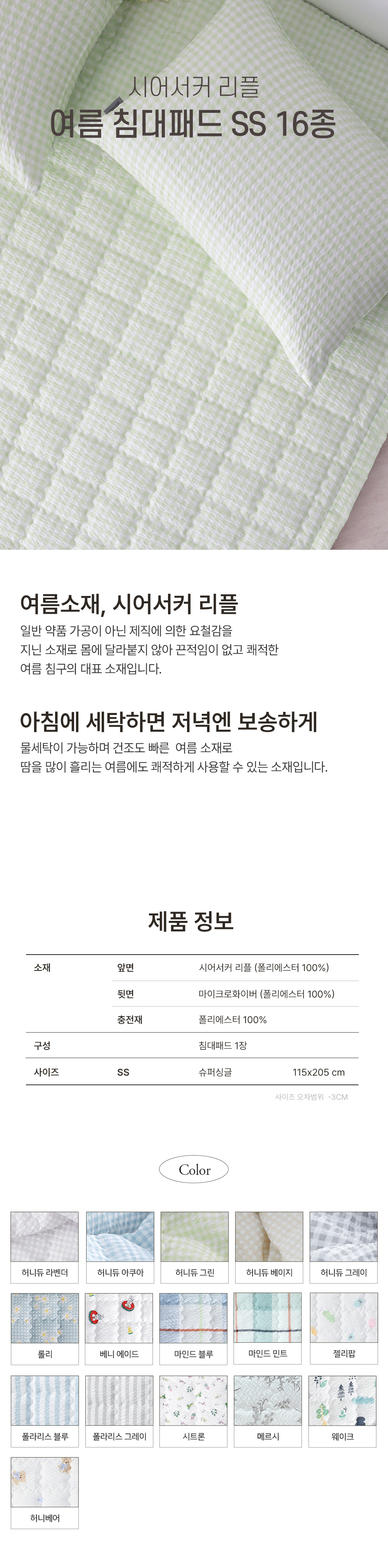아망떼 시어서커 리플 고정밴드 여름 침대패드 SS 16종