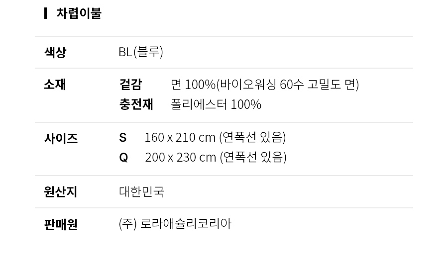 뉴루이즈 바이오워싱 60수 고밀도 면 차렵이불 Q35196720