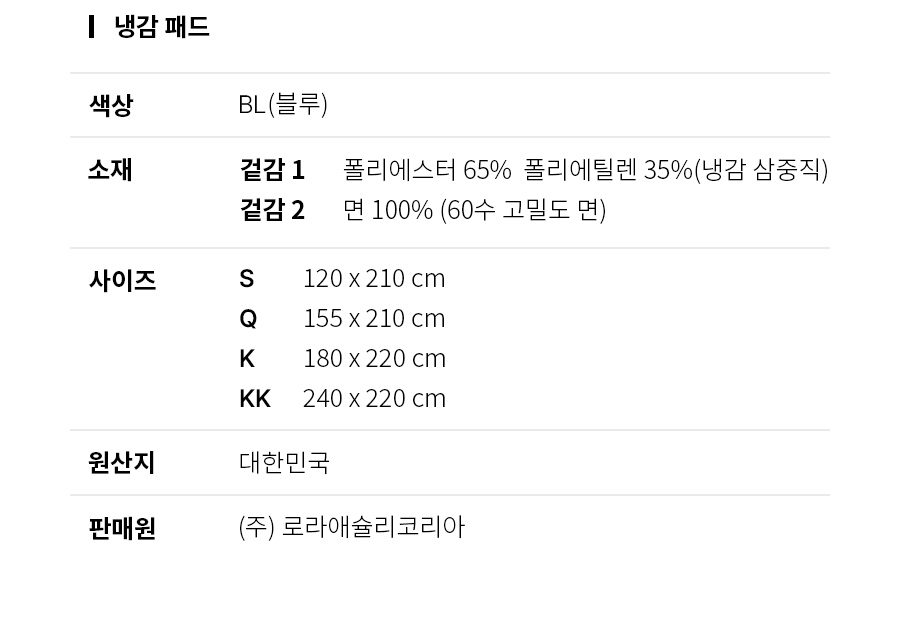 뉴슬란드 쿨링 냉감 패드 S35243887