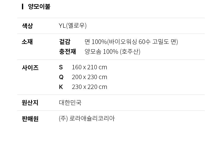 몽쉘 바이오워싱 60수 고밀도 면 양모 이불 Q35285415