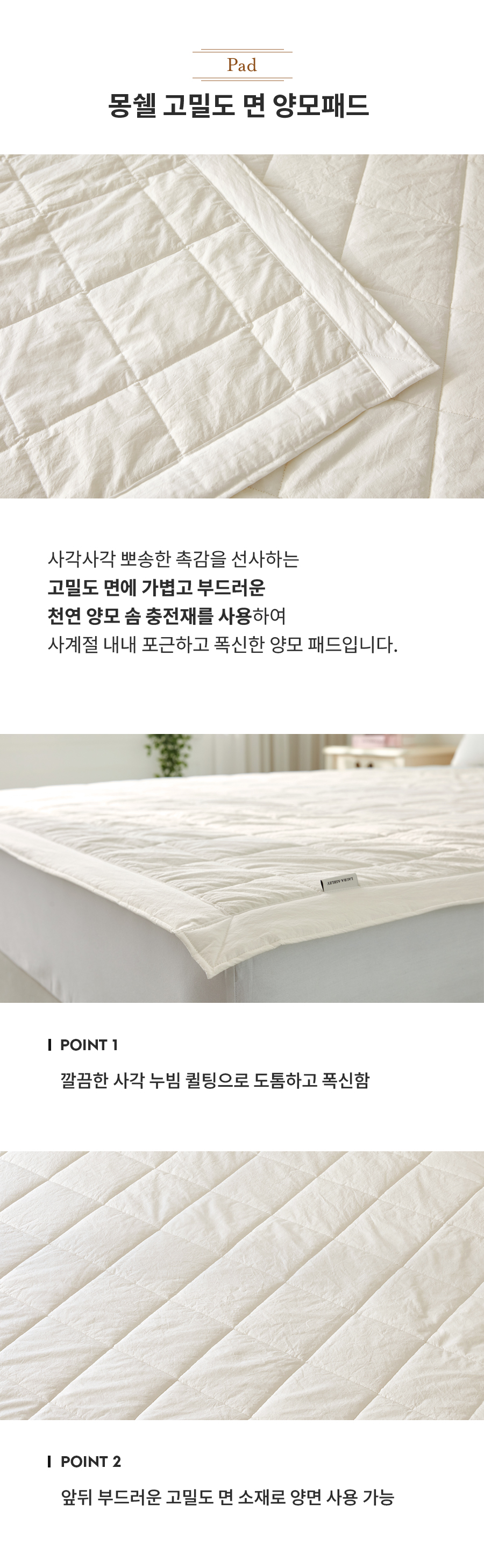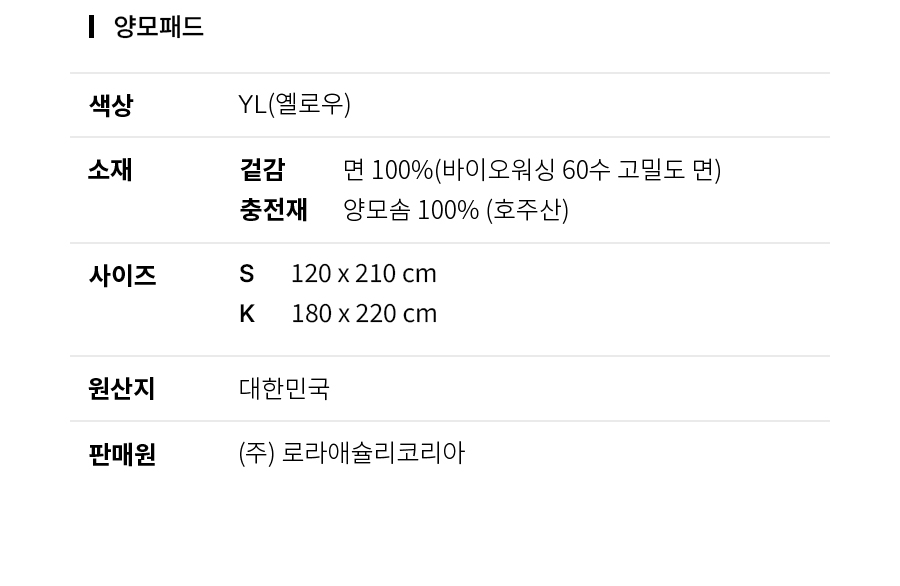 몽쉘 바이오워싱 60수 고밀도 면 양모 패드 S35285414