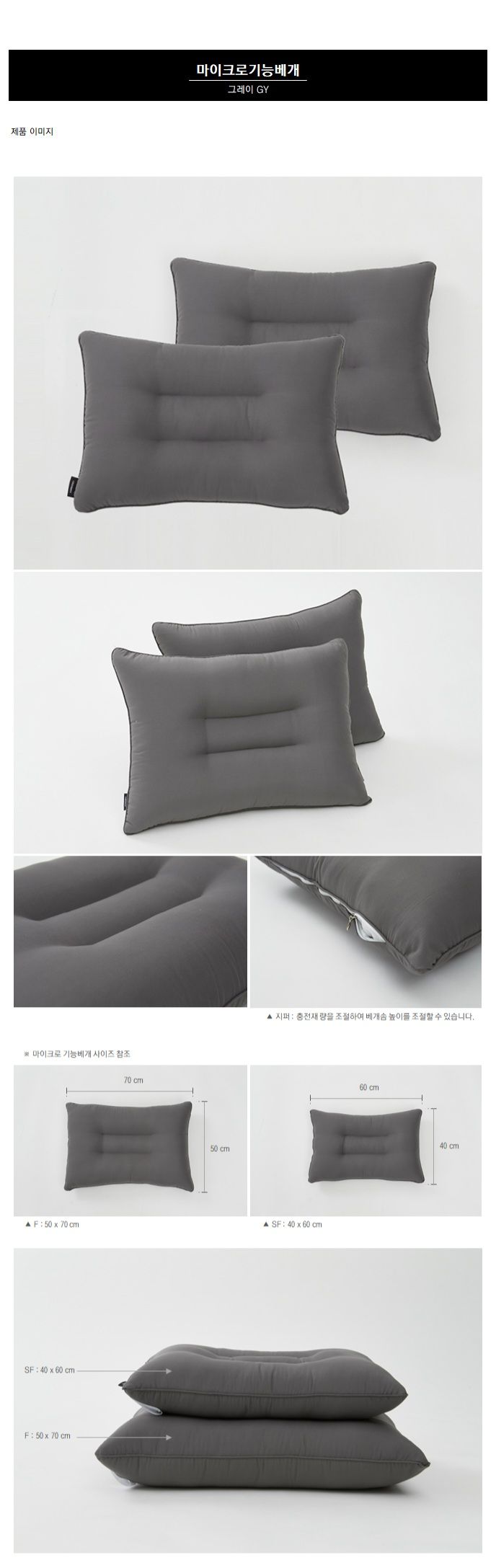 마이크로기능 경추베개솜 40*60 그레이(GY)
