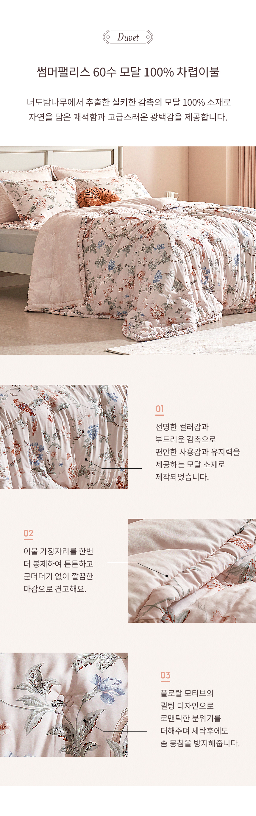 싱글 2종 세트 - 썸머펠리스 60수 모달 차렵이불 베개커버1장..35467551