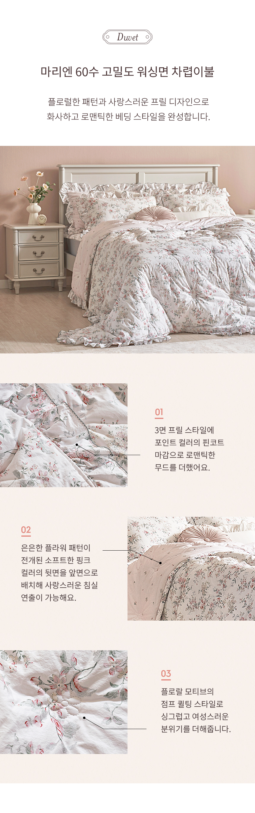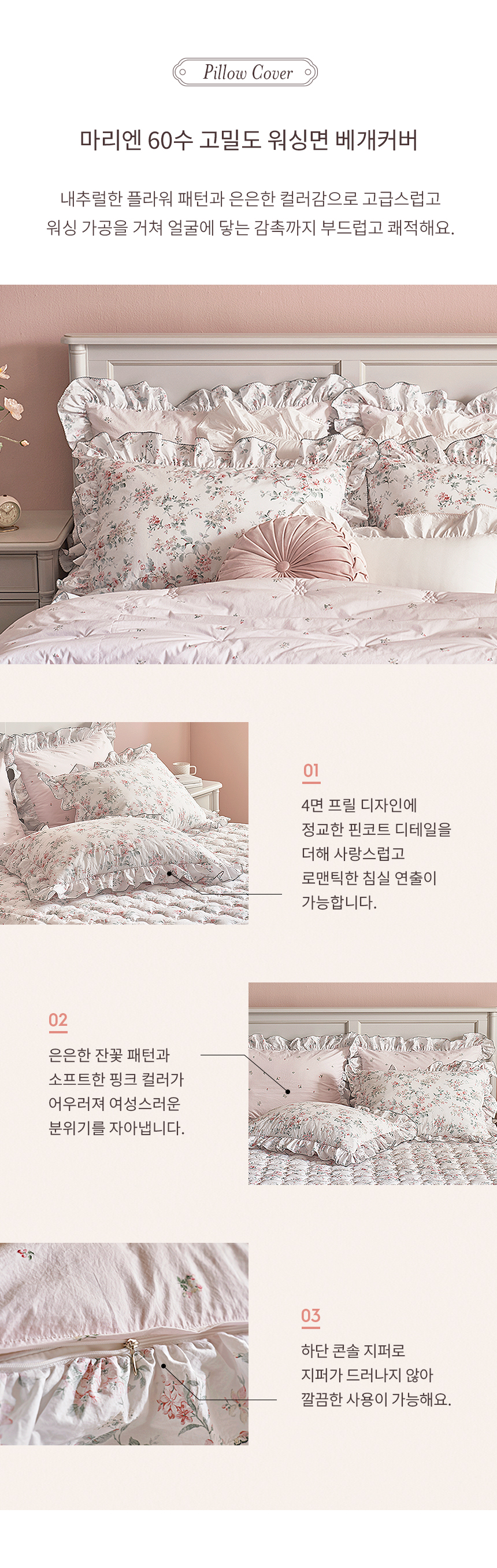 싱글 2종 세트 - 마리엔 바이오워싱 60수 고밀도 면 차렵이불 베개커버1장..35467542