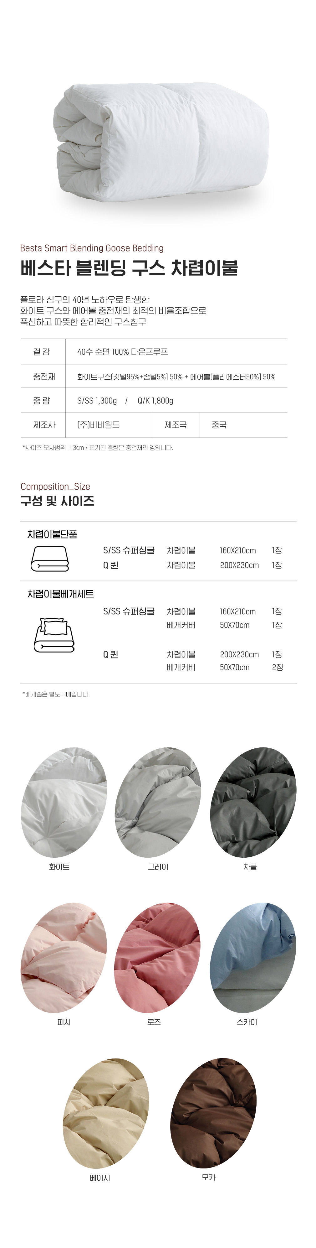플로라 뉴베스타 스마트 블렌딩 구스 차렵이불 단품 및 베개세트 SS/Q 단독 특가