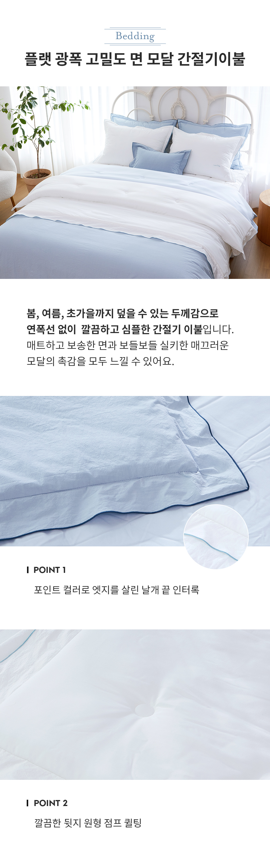 싱글 2종 세트 - 플랫 60수 고밀도 면 모달 간절기이불 베개커버1장..35467556