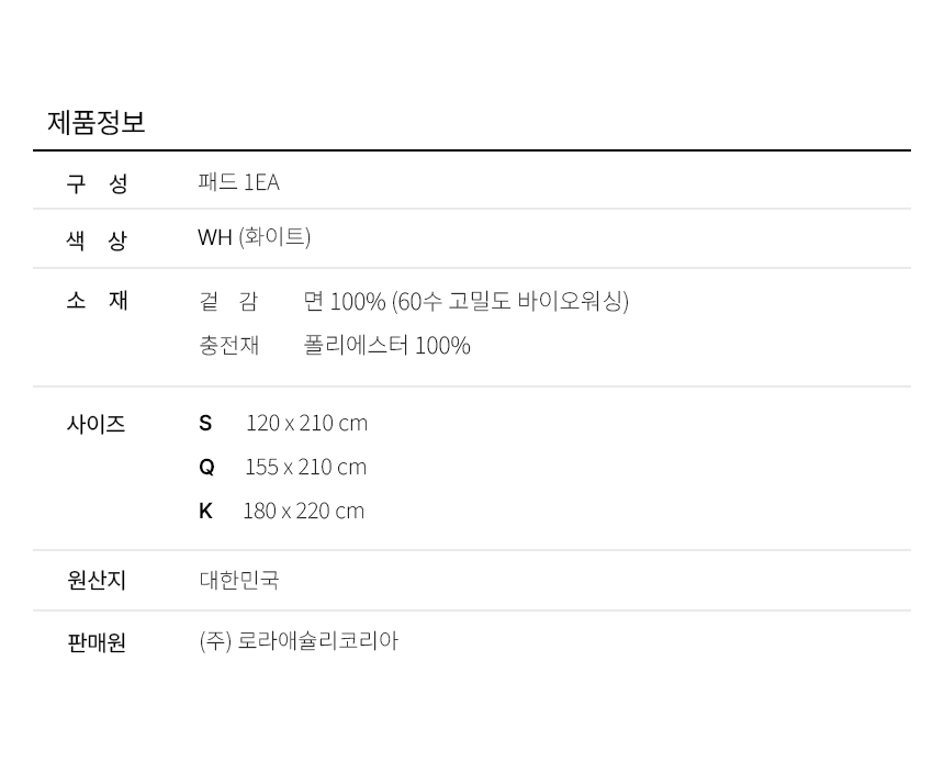 벨리아 바이오워싱 60수 고밀도 면 패드 S35467569