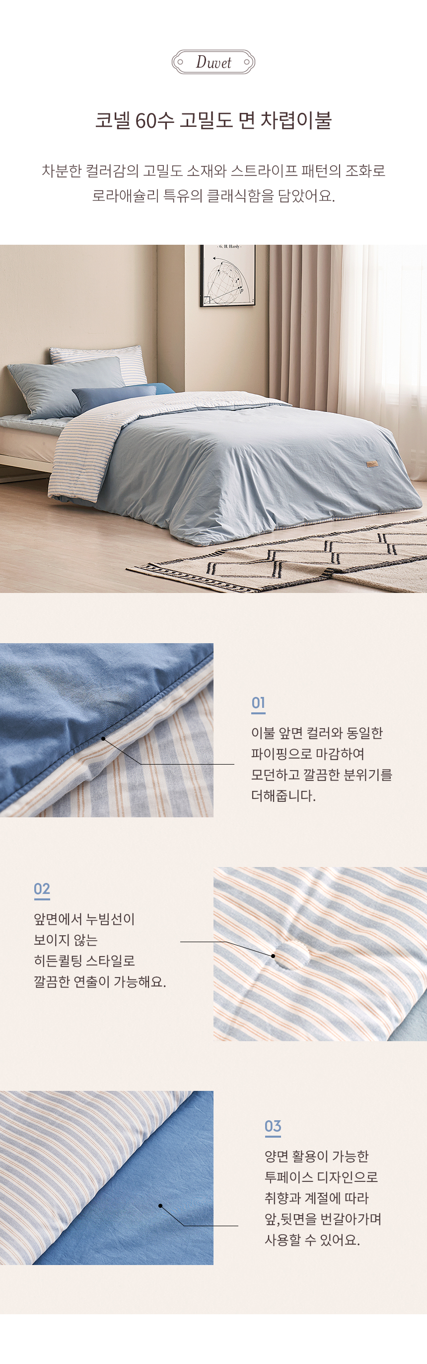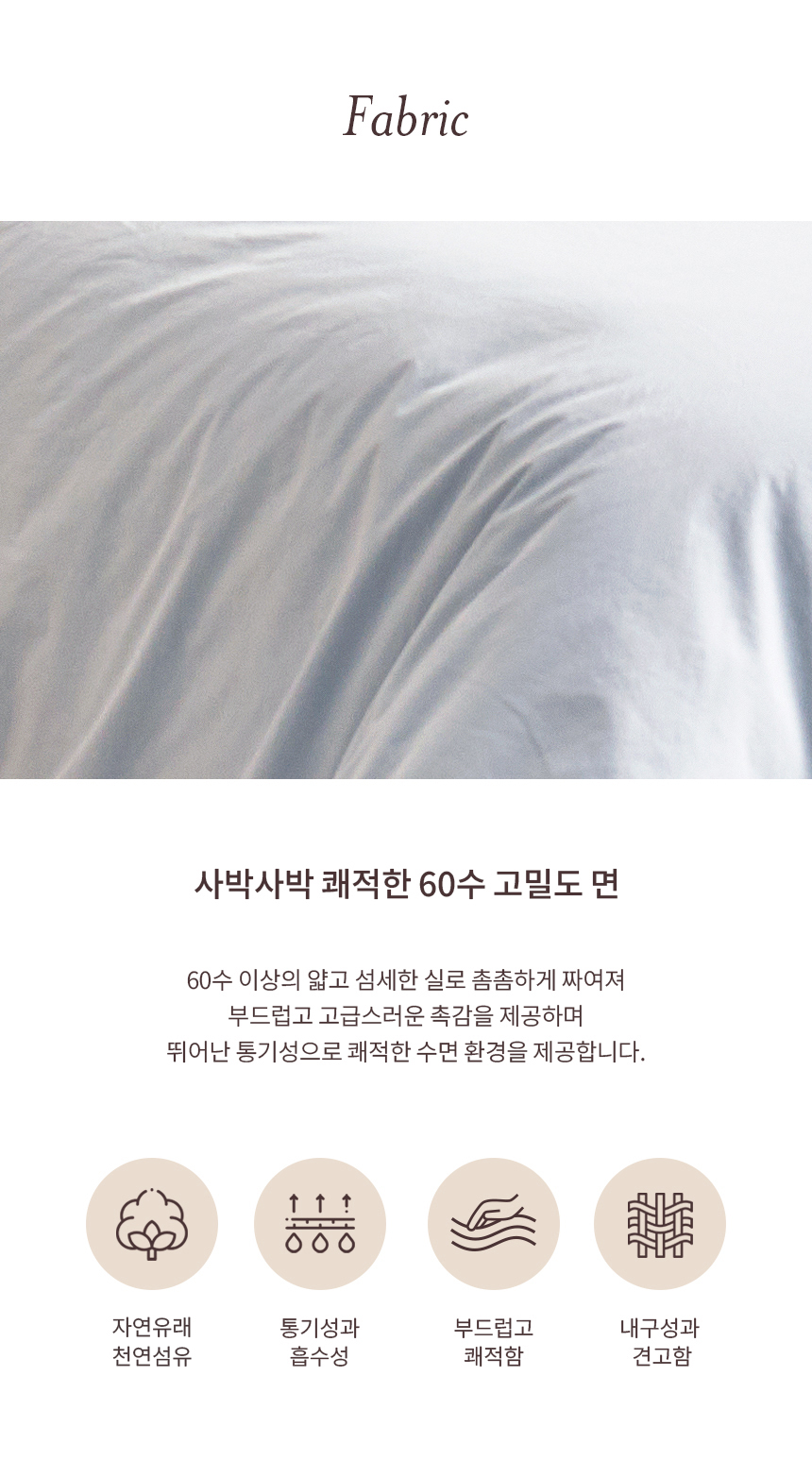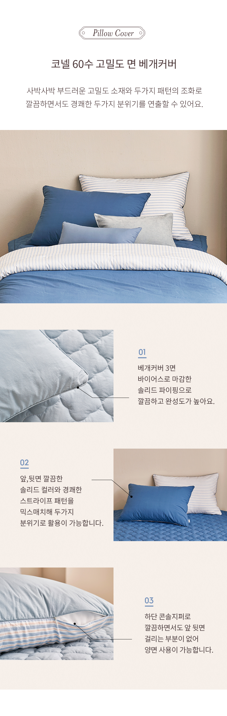 싱글 2종 세트 - 코넬 60수 고밀도 면 차렵이불 베개커버1장..35467557