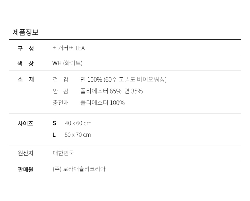 벨리아 바이오워싱 60수 고밀도 면 베개커버 L 50X7035467570