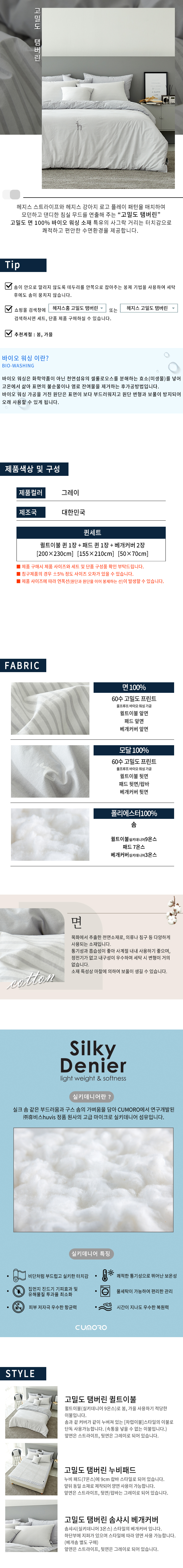 갤러리아 고밀도 탬버린 그레이9온스세트퀸퀼트이불+패드+베개커버2장