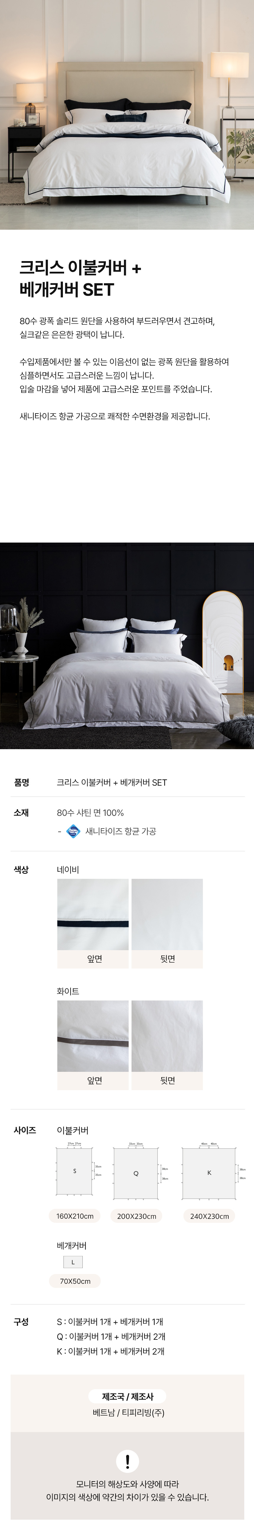 갤러리아 크리스 80수순면 호텔 이불베캐커버 세트 Q