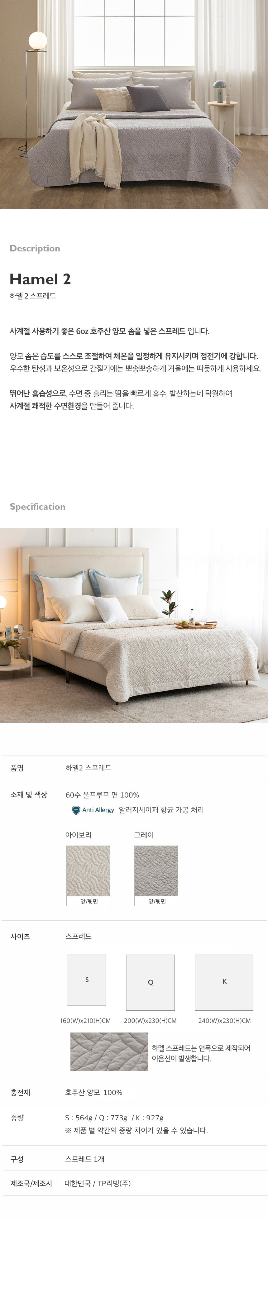 갤러리아 하멜2 호주산 양모 스프레드 K