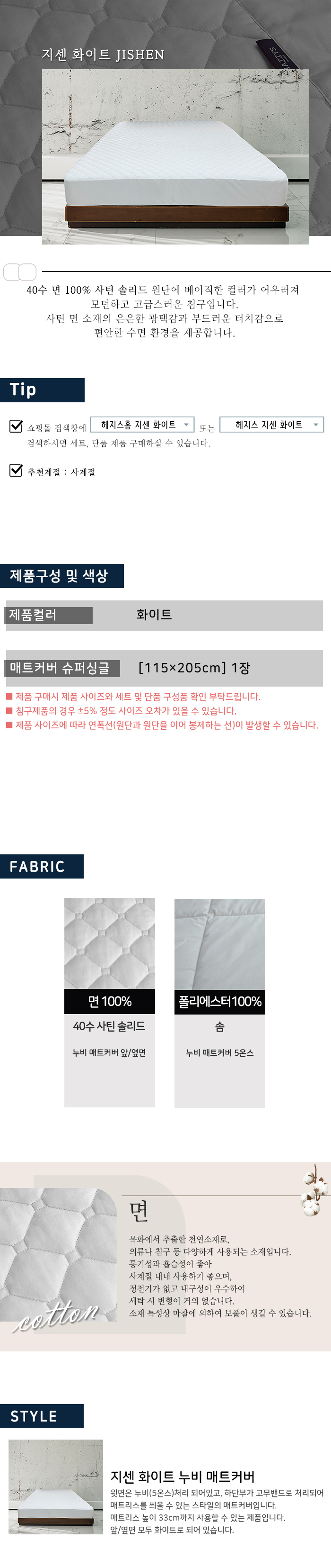 갤러리아 지센 화이트 매트커버 싱글