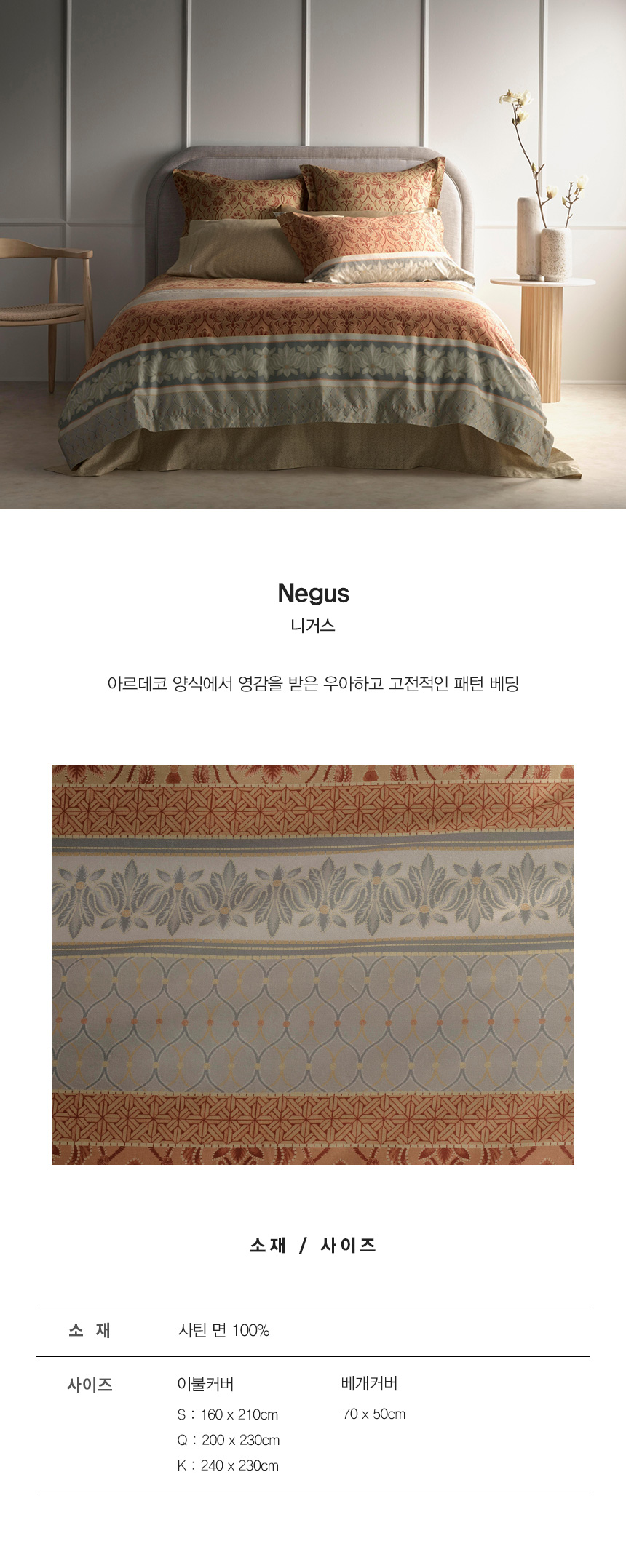 (롯데백화점)니거스 순면 이불커버세트 K (Gold)