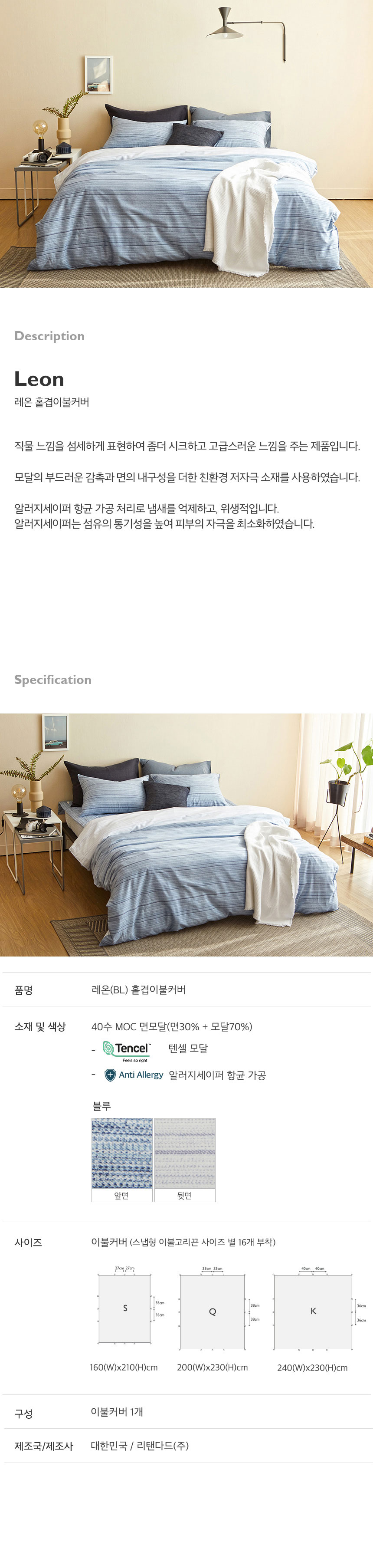 (롯데백화점)레온 면모달 이불커버 Q