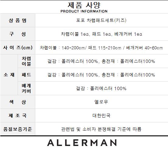 (롯데백화점)포포 차렵패드세트(키즈)S