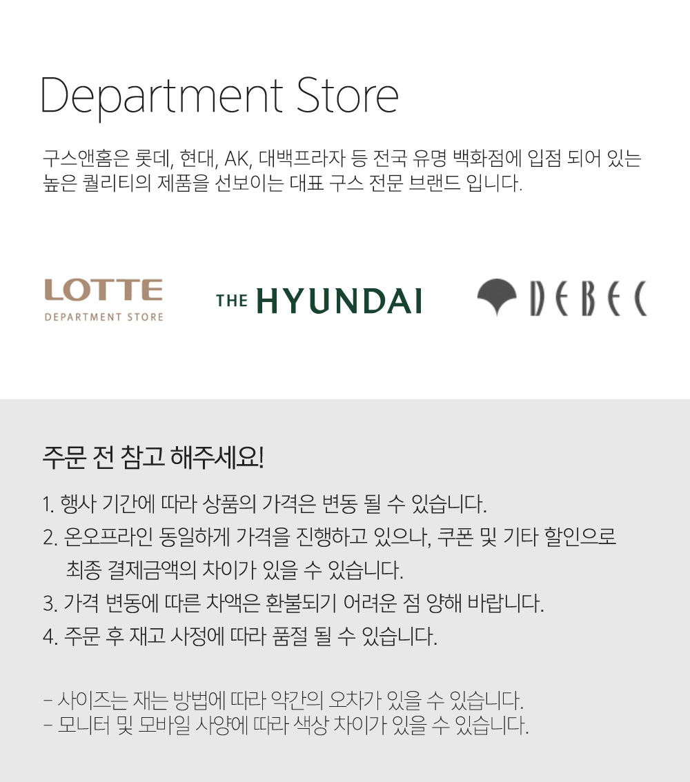 상품관련 상세문의처 : 갤러리아백화점(한화갤러리아㈜ 광교점) 구스앤홈 T.031-5174-7875
