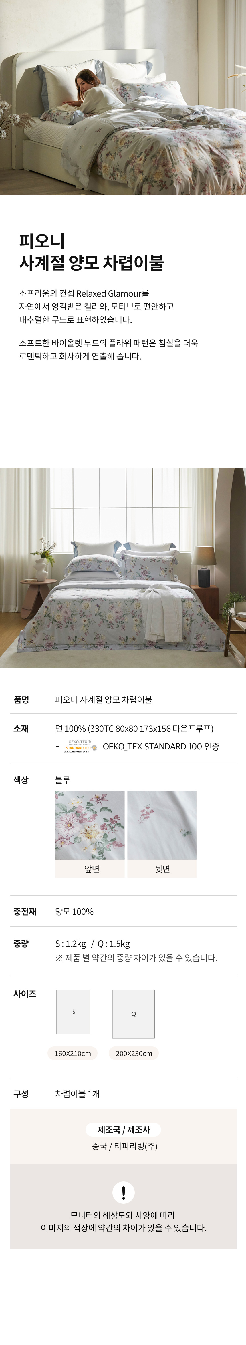 (롯데백화점)피오니 양모차렵이불 S (사계절)