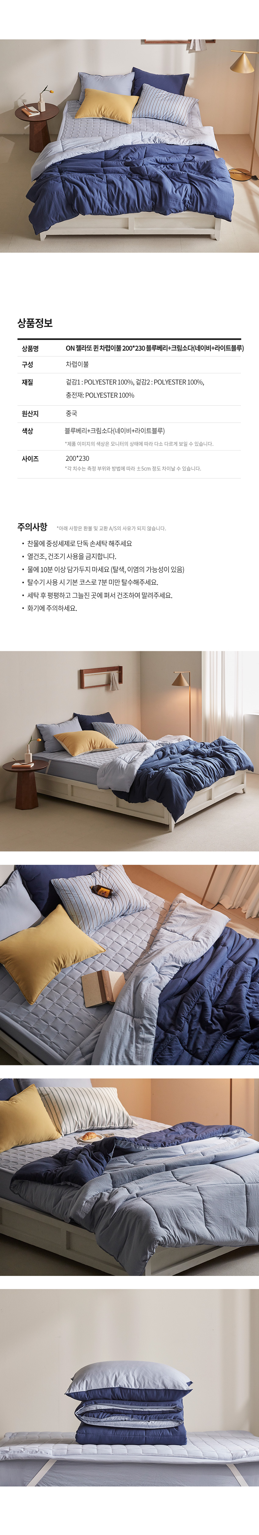 보리보리/모던하우스 ON 젤라또 퀸 차렵이불 200x230 블루베리+크림