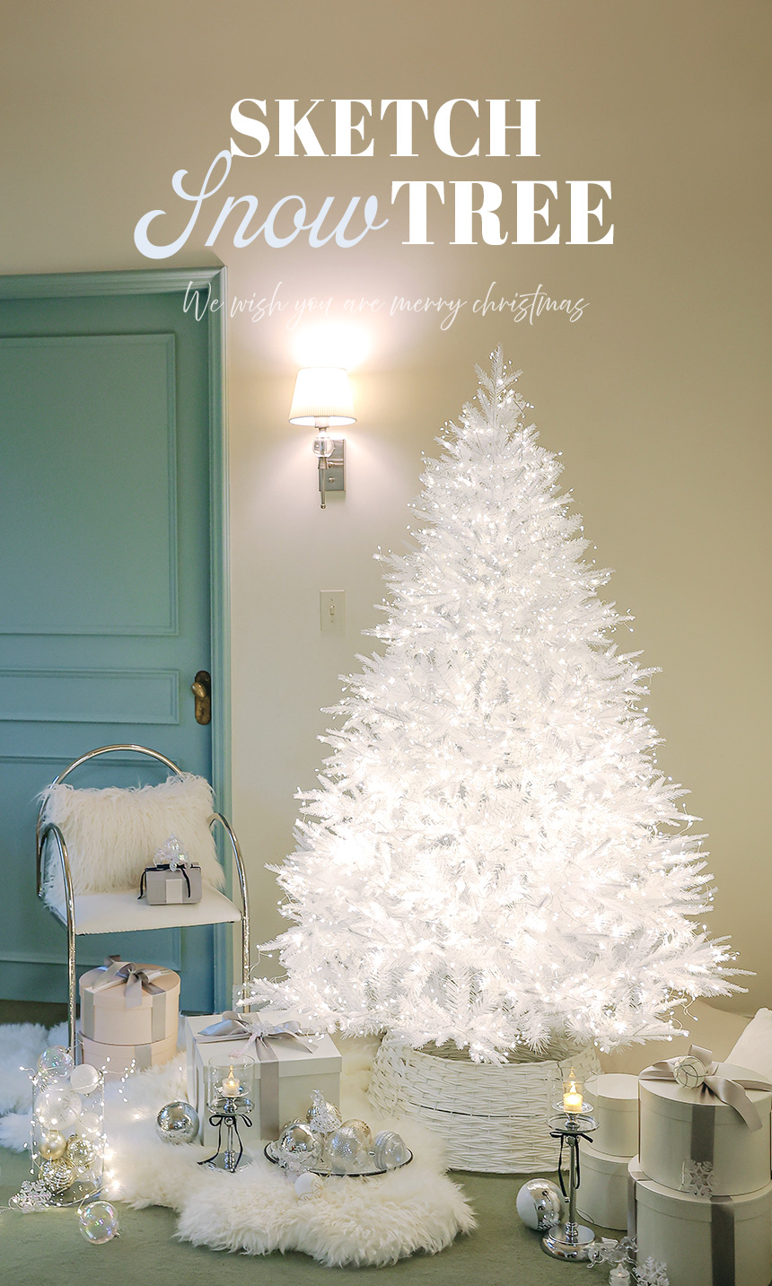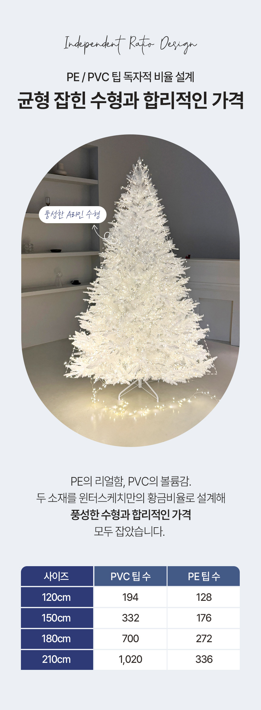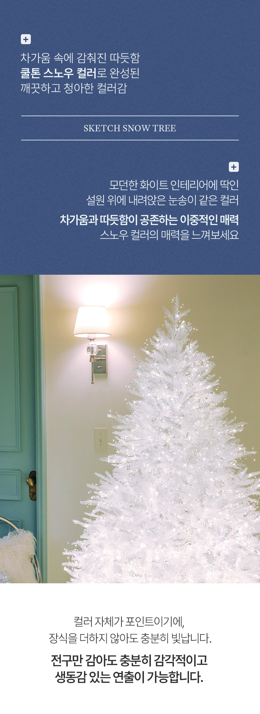 윈터스케치 크리스마스 화이트 트리 대형 PE 우드 무장식 고급 스케치스노우트리 210CM