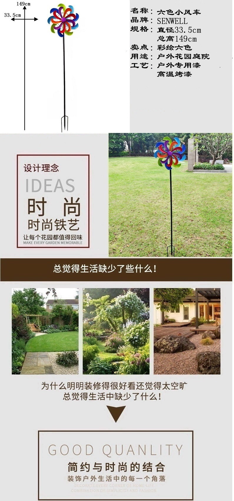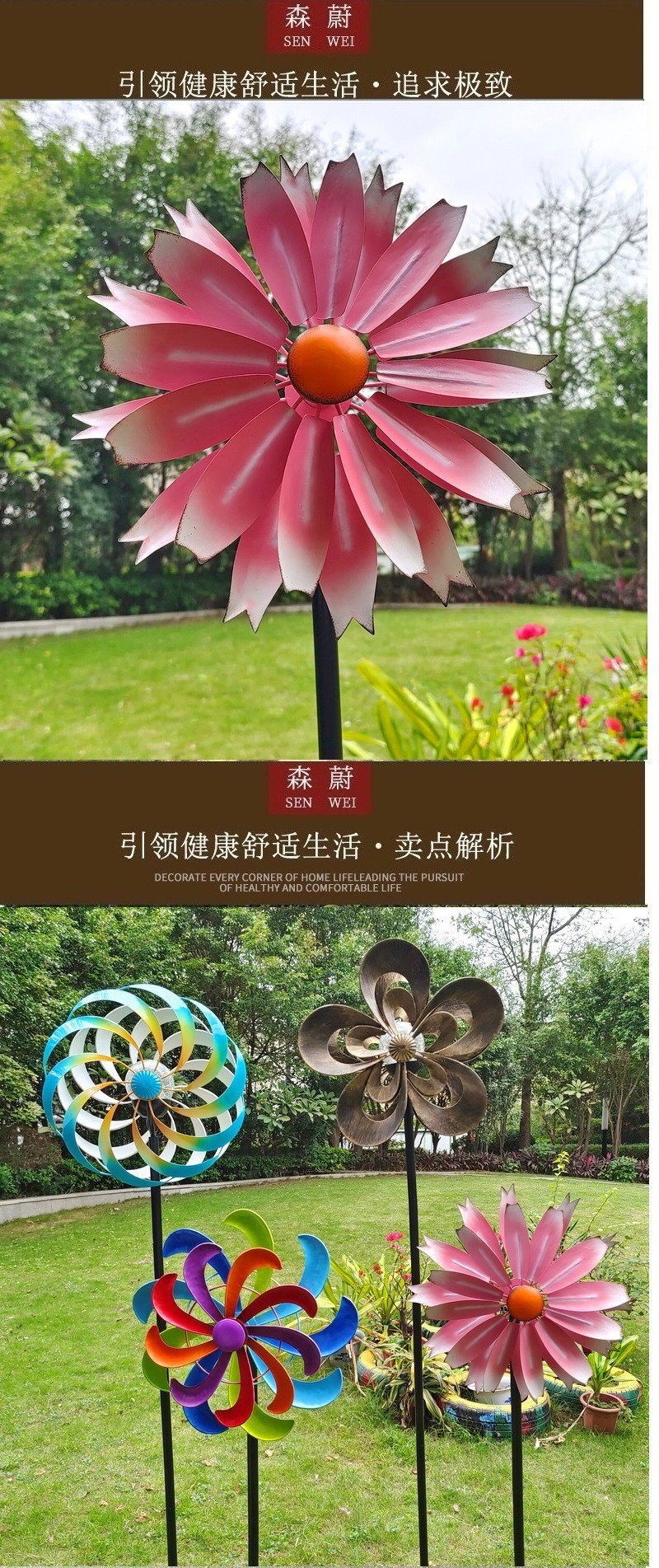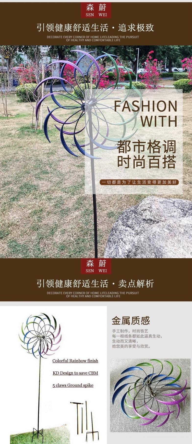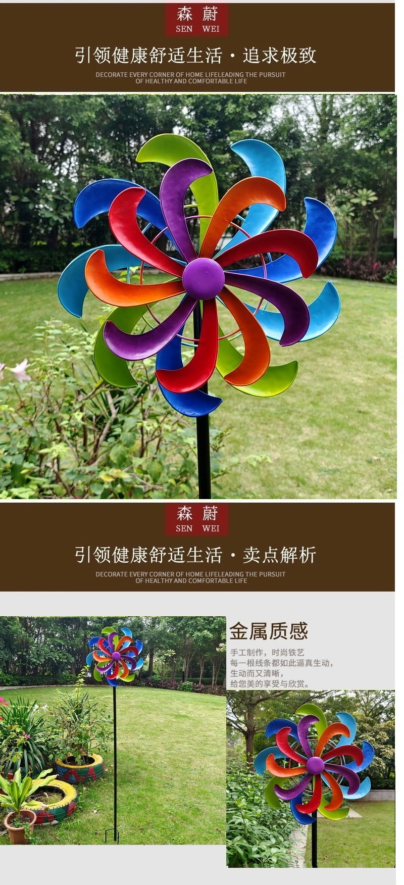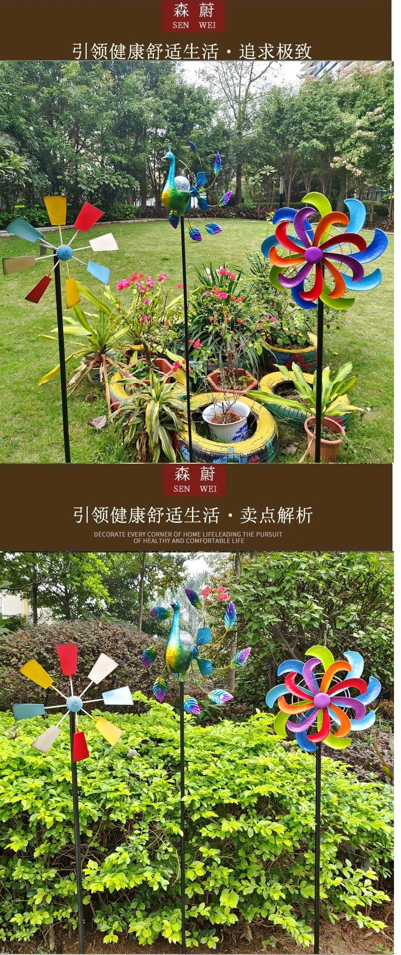 대형 바람개비 정원 화단 장식 무지개 마당 농장 풍차