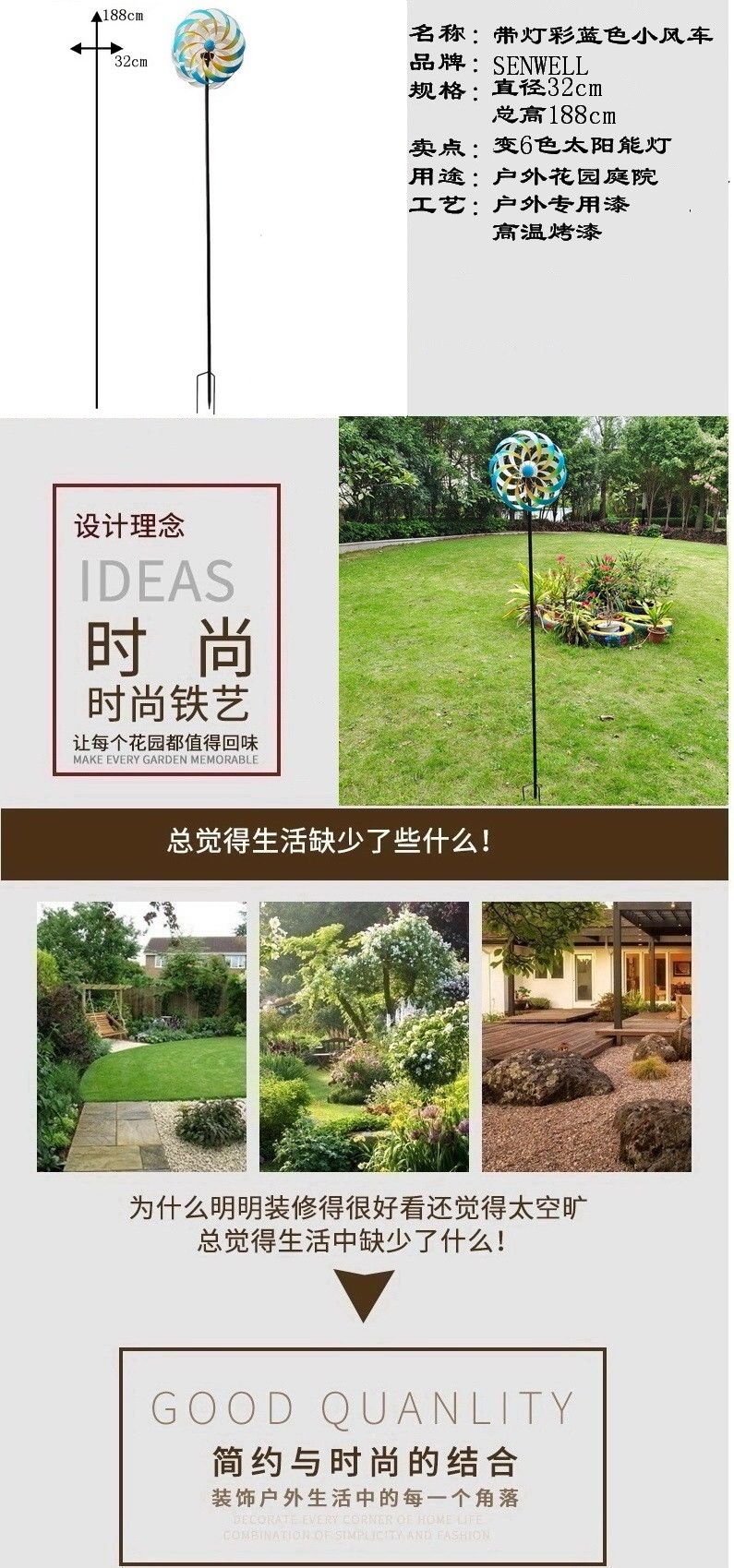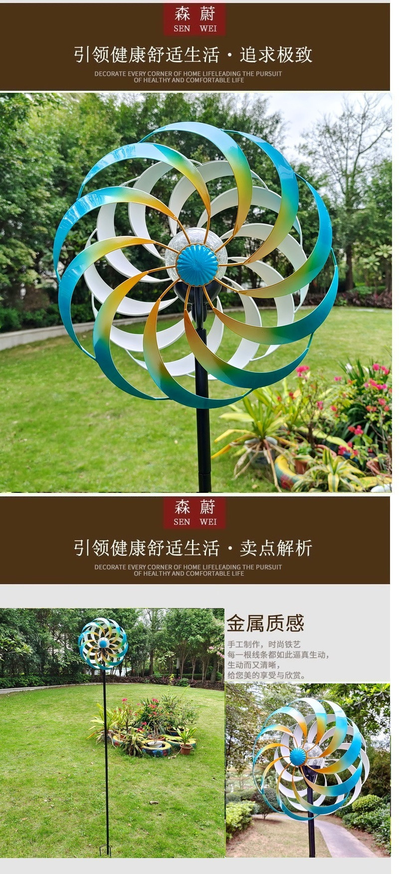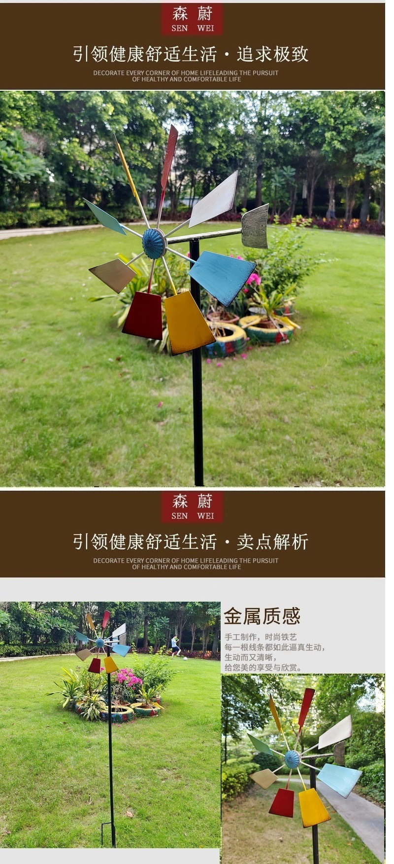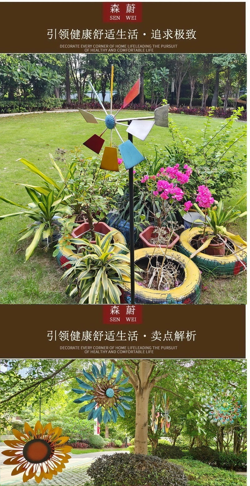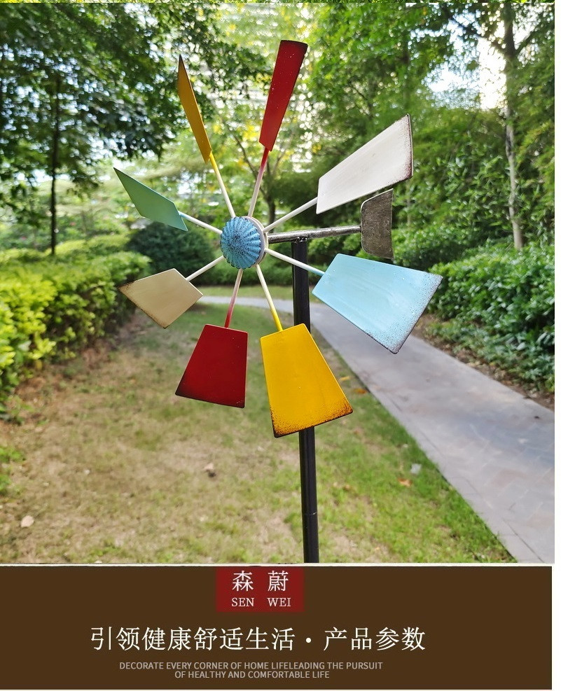 미국 컨트리 대형 야외 빌라 안뜰 정원 장식 바람 회전 바닥 철 풍차 7 색