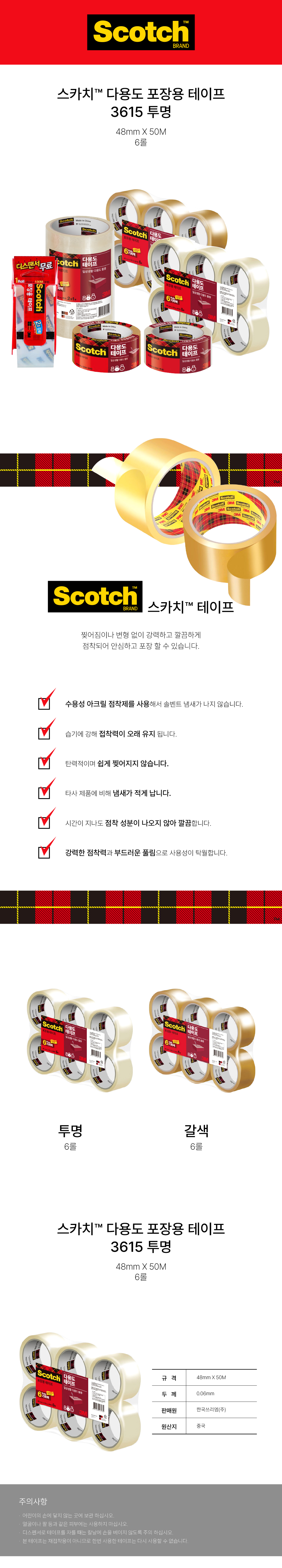 스카치 투명 포장 박스테이프 3615 48mm X 50m 6롤