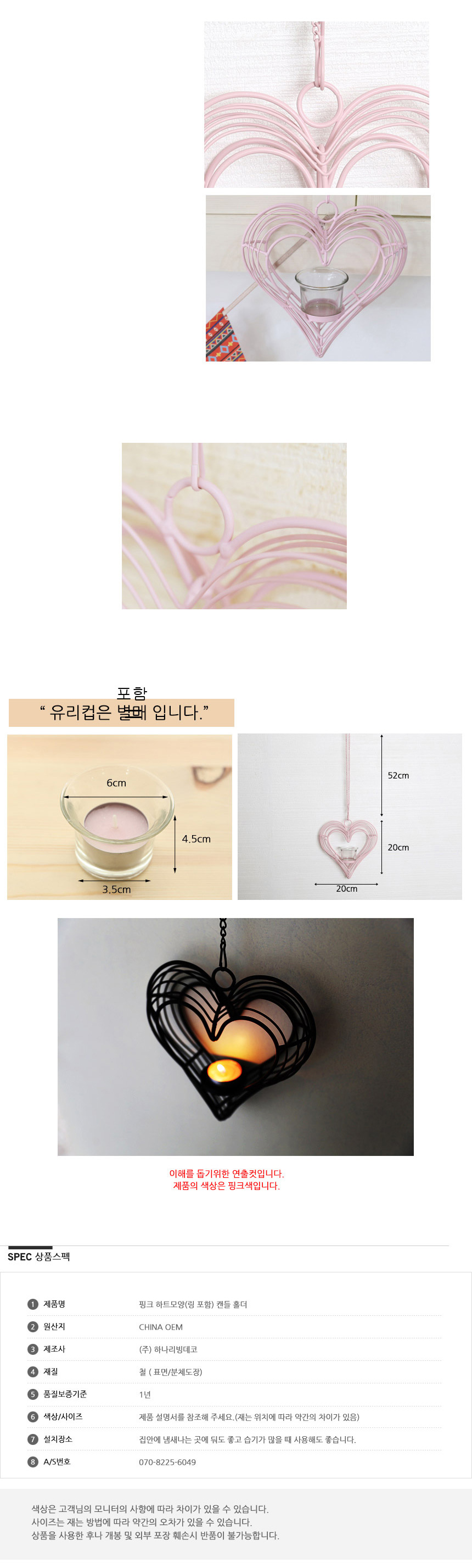 (현대Hmall)하나리빙 핑크하트 캔들홀더(링 컵 포함) x 3개
