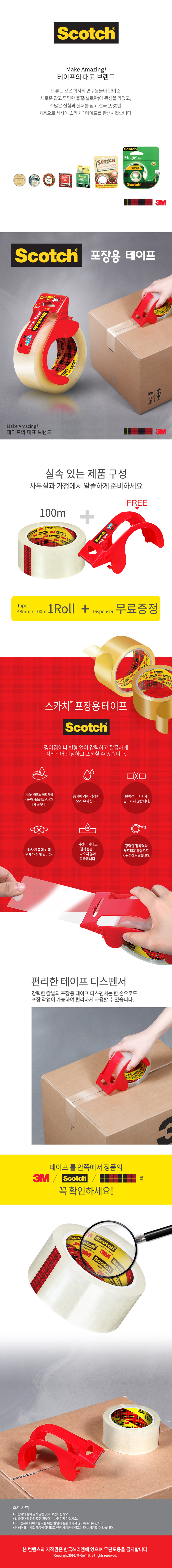 스카치 투명 포장 박스테이프 3615 48mm X 100m 1롤 디스펜서 포함
