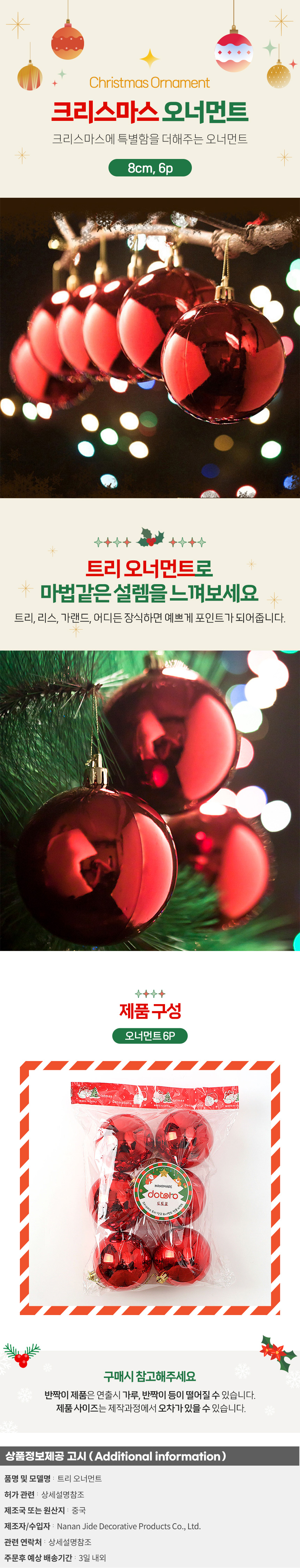 크리스마스 트리 장식 오너먼트 레드볼 유광 8cm 6p 빨간 공 방울 겨울 소품