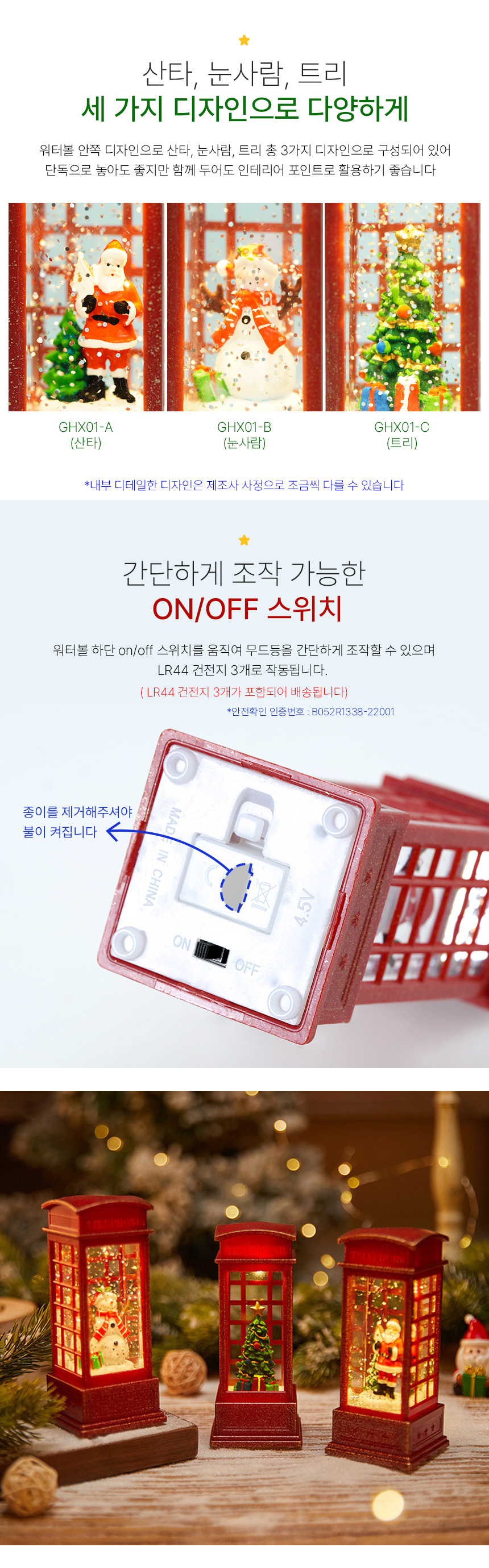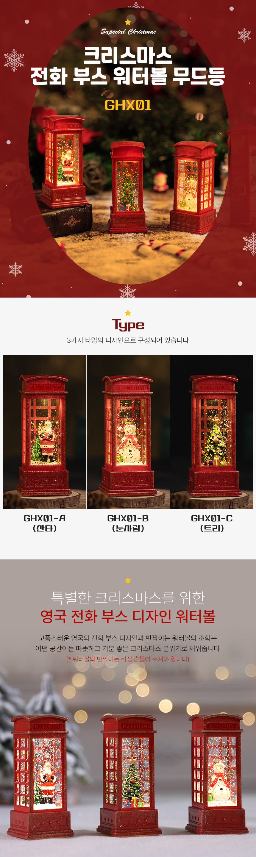 크리스마스 소품 산타 눈사람 전화부스 워터볼 GHX01