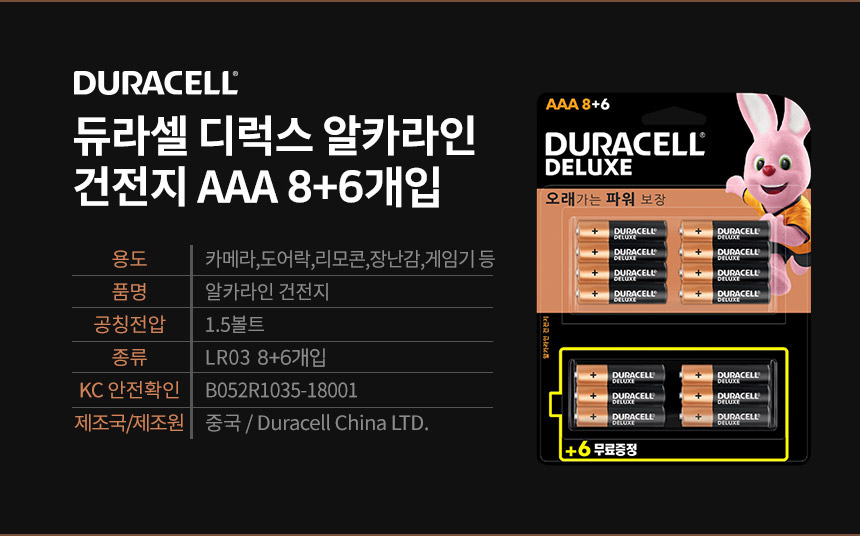 듀라셀 디럭스 알카라인 건전지 AAA 8+6 14개입 박스40개입) 자재