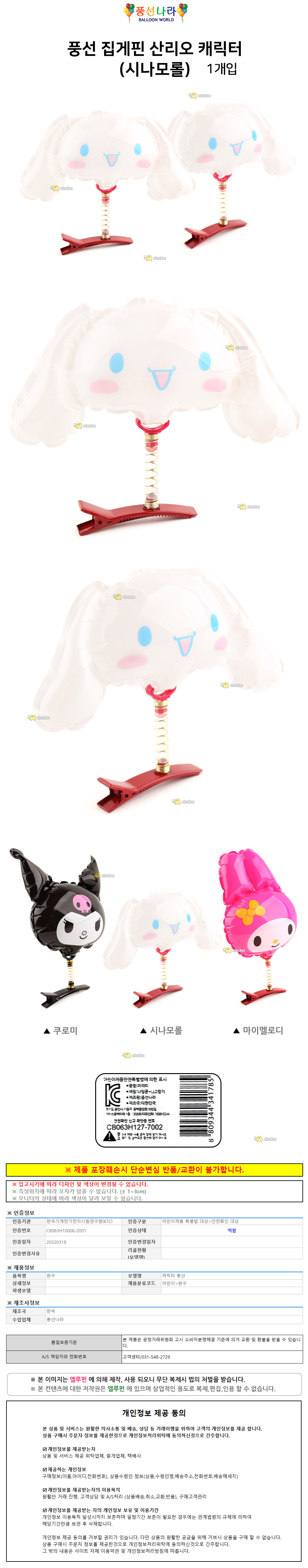 [상품명: 풍선 집게핀 시나모롤 유아 선물 어린이집게핀 유치원]